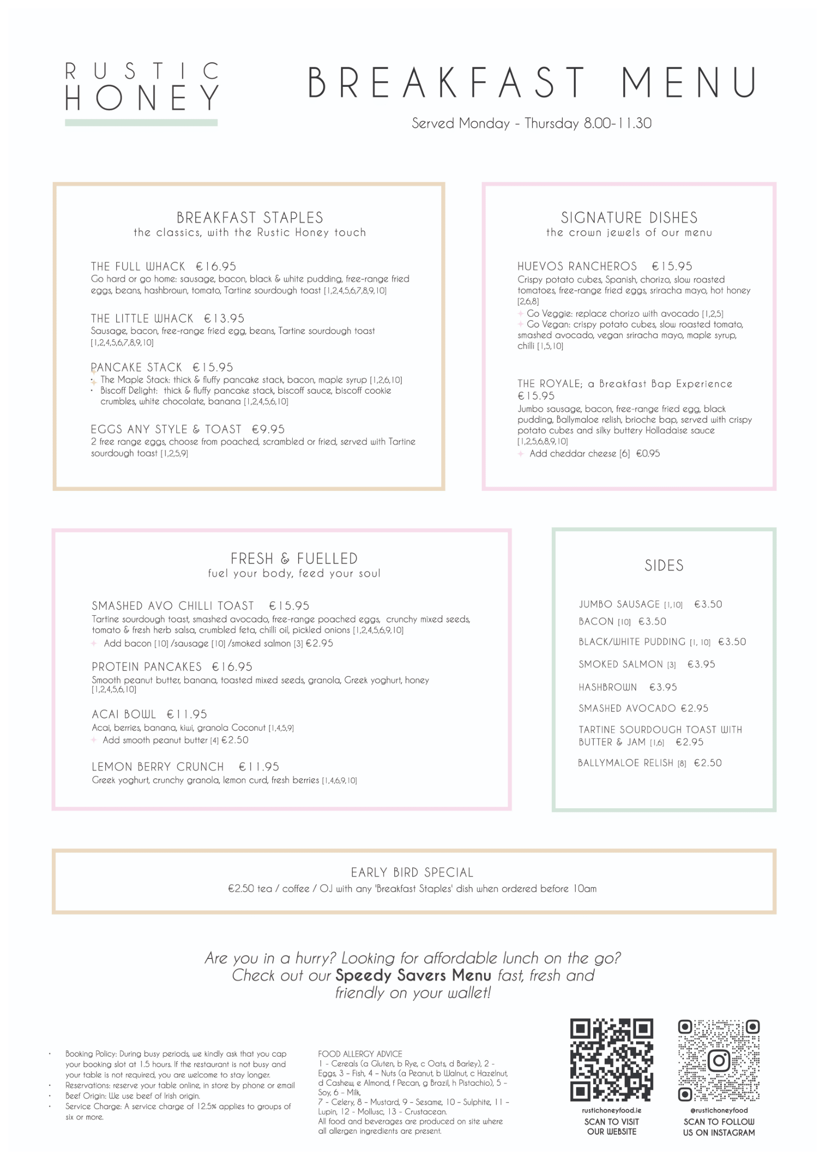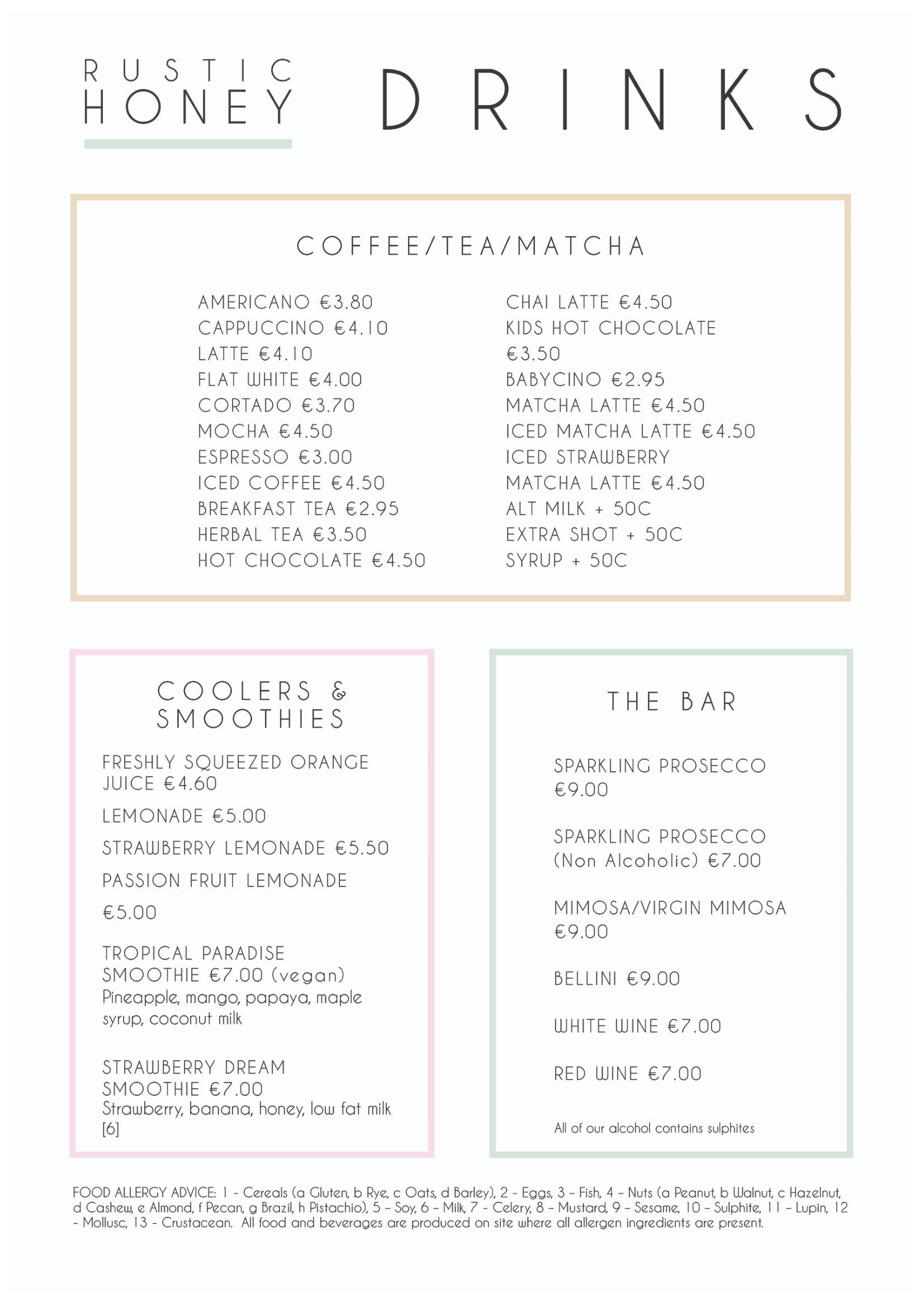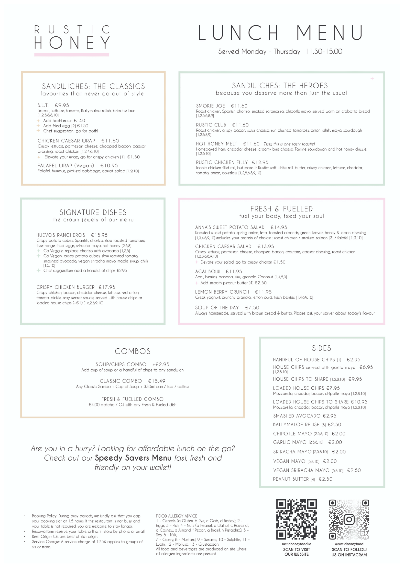 Rustic Honey Café, Cherrywood opened in November 2023. Serving breakfast & lunch Monday to Friday and an epic Brunch experience on Saturday / Sunday / Bank Holiday’s. Our style is contemporary, homemade and excellent quality food and service.