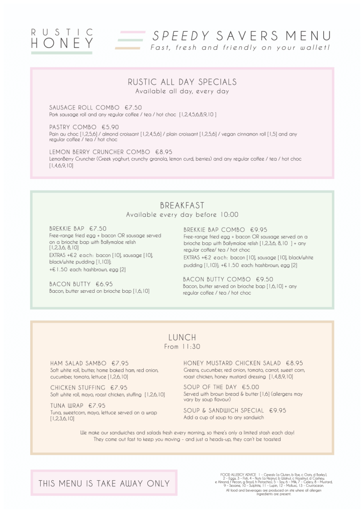 Rustic Honey Café, Cherrywood opened in November 2023. Serving breakfast & lunch Monday to Friday and an epic Brunch experience on Saturday / Sunday / Bank Holiday’s. Our style is contemporary, homemade and excellent quality food and service.
